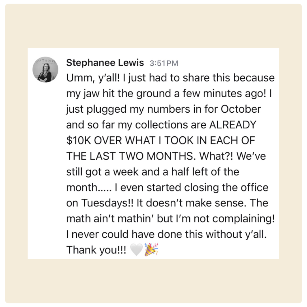 We help brick and mortar health and wellness professionals get more clients, keep more clients and operate like a well oiled machine so they can free up time. We take our years of experience and knowledge and help you build a business of YOUR dreams. We not only want you to have a business you love but also a life you love. We help you make more money by building a five star team you love working with so that you can start to do other things you love.